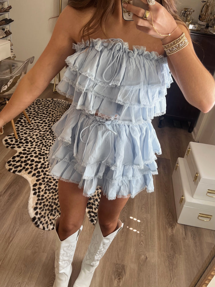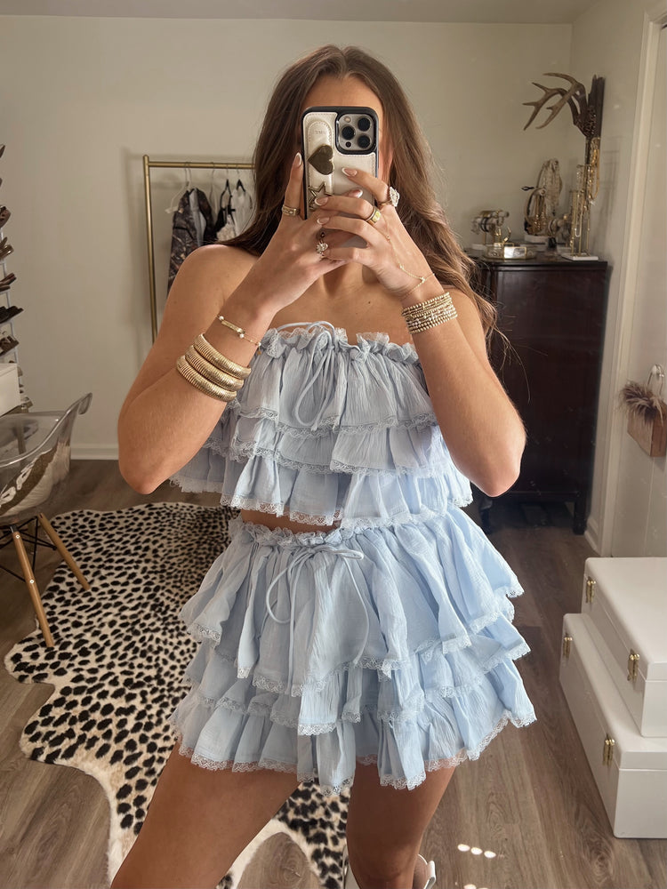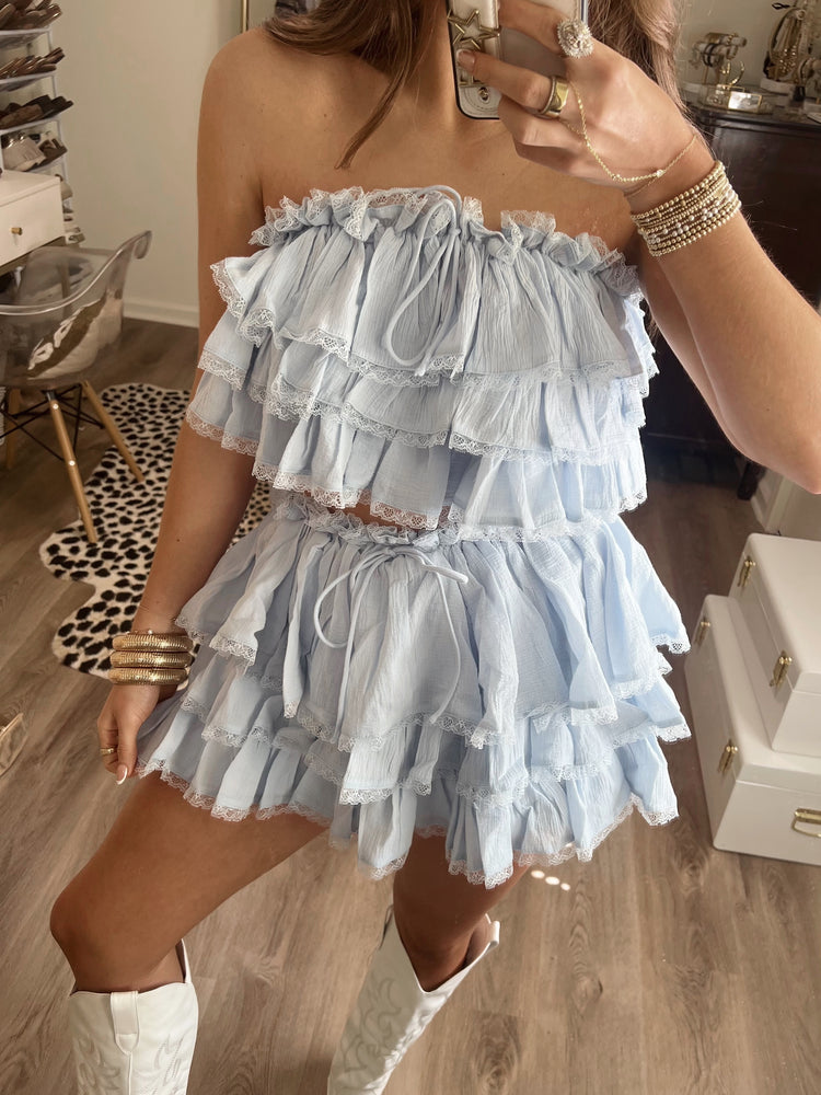 Ruffle tiered crop top and mini skirt set - shorts have inside lining